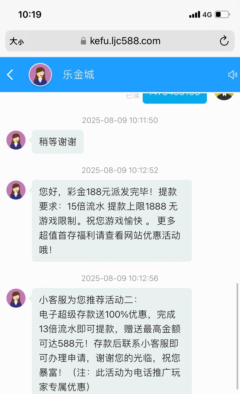 送了188之前有注册过账号,没接到电话去碰到了,没打出来,网址ljc778.com