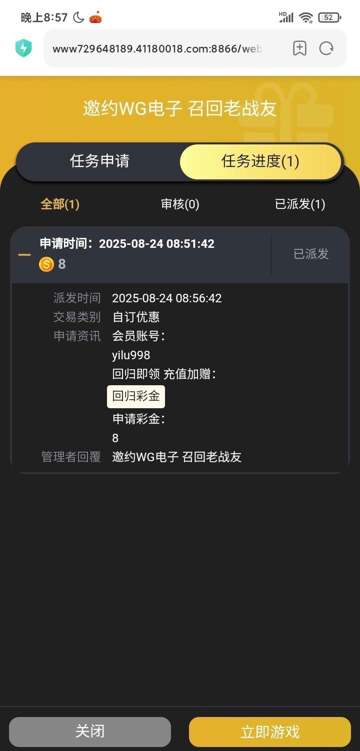今天上去看了下活动突然看见了这回归彩金,有号充值玩过的去。没号的就算了网址 3118.com 4008.com